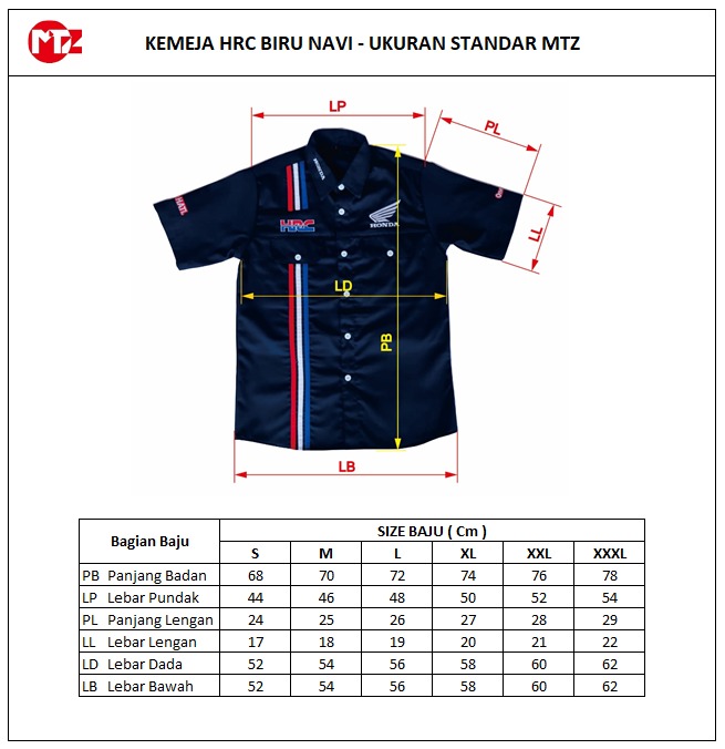 Baju HRC berwarna Hitam tersedia dalam uk S – XXXL